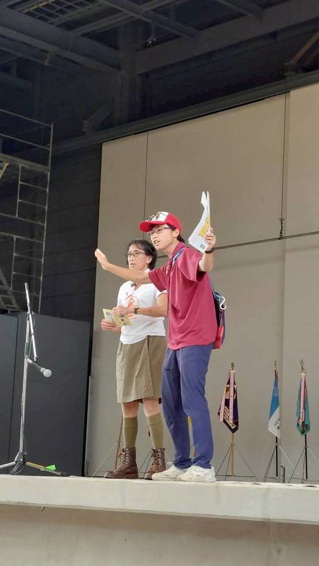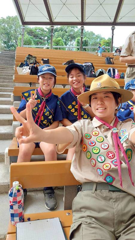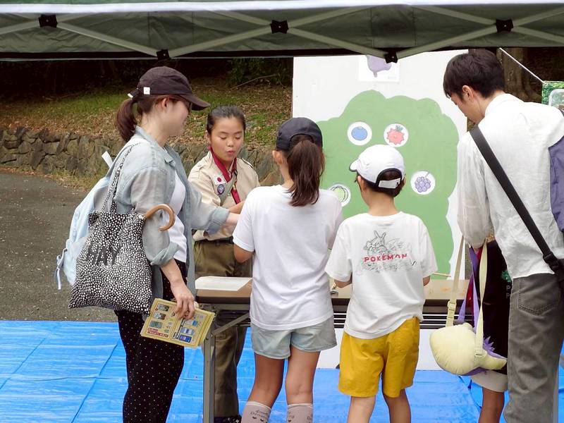 19団の担当ブースは急造担架の作り方と患者の運搬体験。