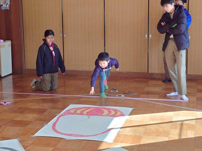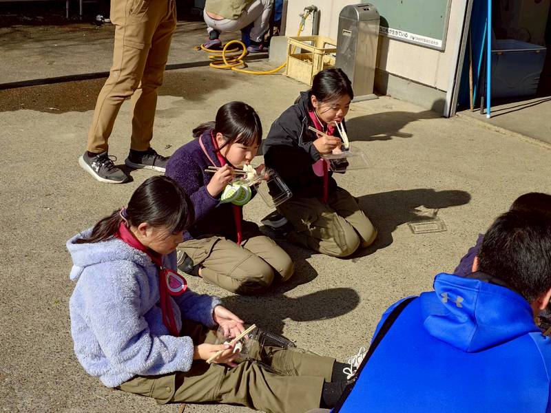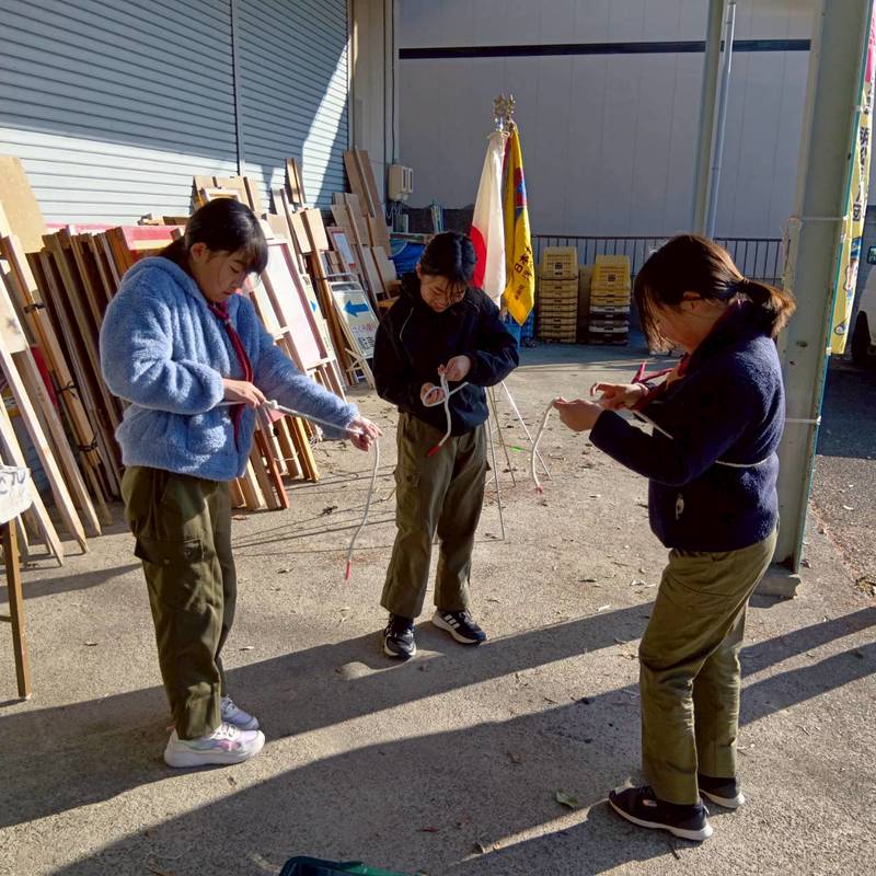 ロープを使ったゲームに備えて練習中のお姉さん達!